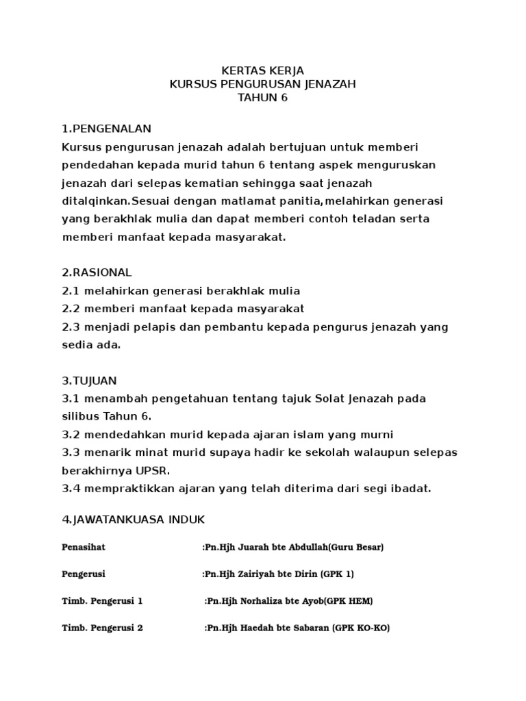 KERTAS CADANGAN PROGRAM KURSUS PENGURUSAN JENAZAH cadangan program